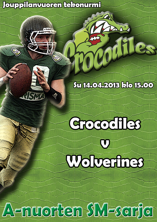 Seinäjoki Crocodiles nylki helsinkiläisen Wolverinesin A-junioreiden SM-sarjan avausmatsissa aurinkoisella Jouppilanvuoren tekonurmella lumen reunustamalla kentällä. Etenkin nuorten vihreänuttujen heittopeli oli ihan helmeä joukkueen napattua avausvoiton lukemin 48-20 (28-14).